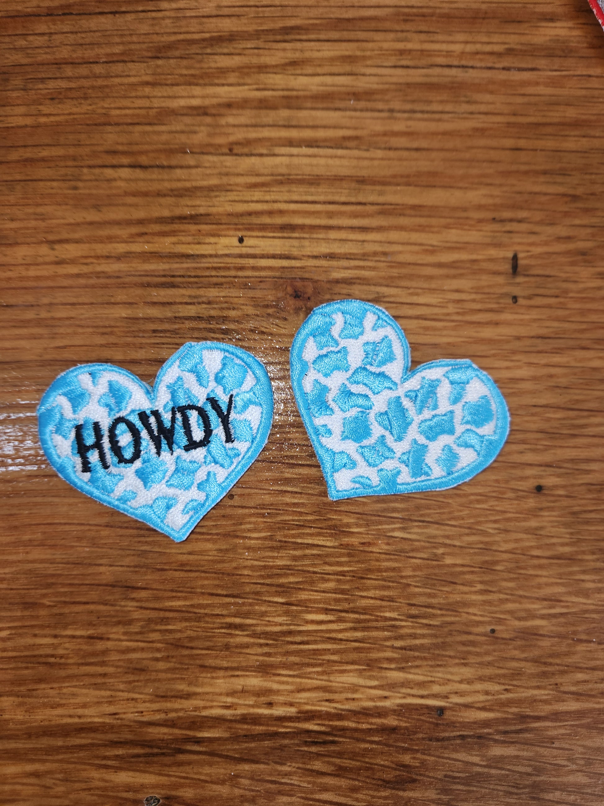 Your choice of hearts in cow print Roughly a 2*2embroidered patch