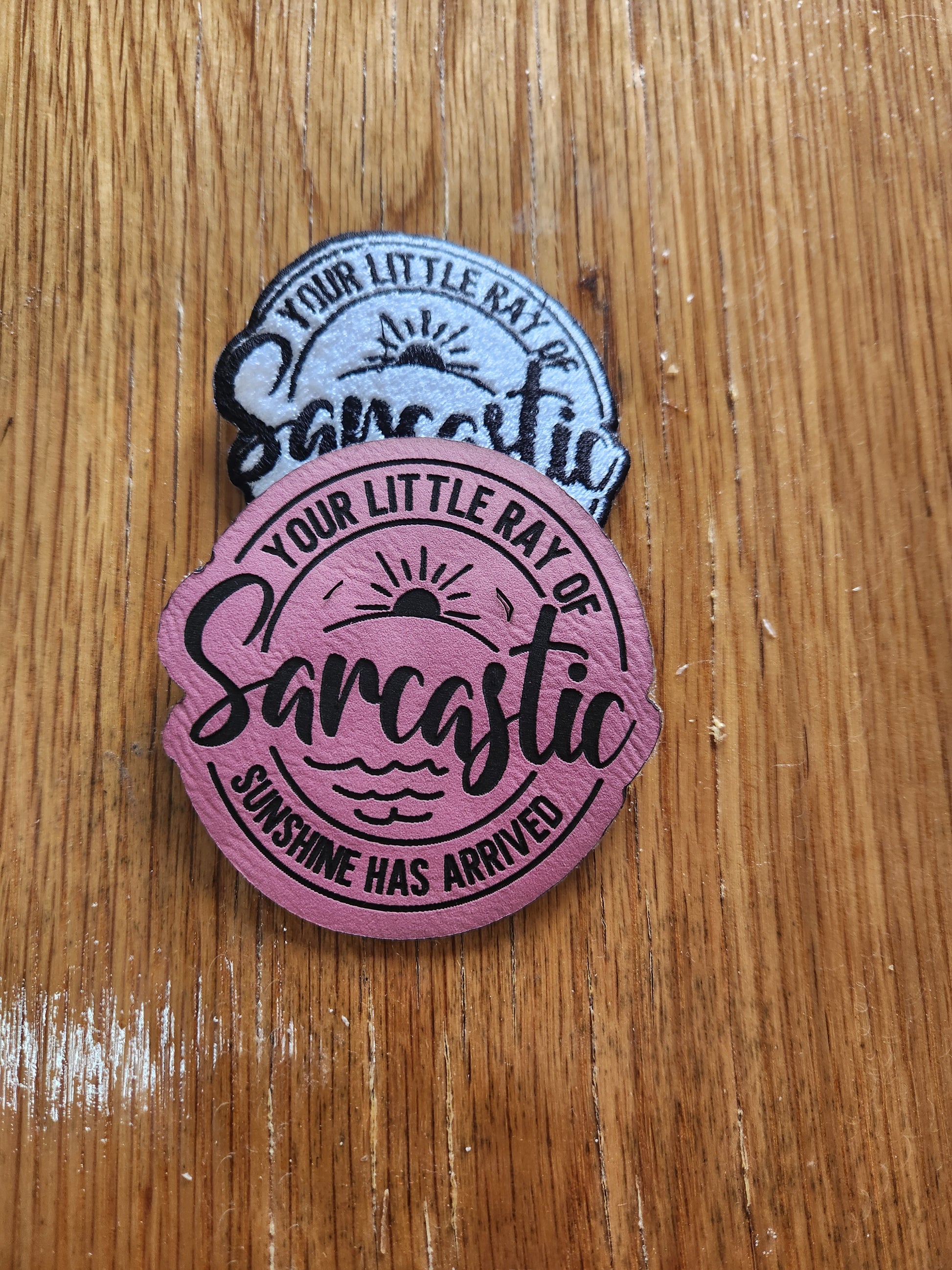 Your choice of sarcastic sunshine patches. Size does vary but most are 3 wide